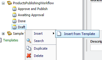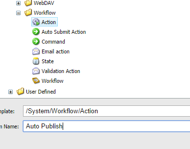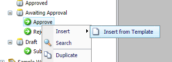 Select Approve Workflow Command, Right click and select Insert from Template Command and create the new workflow action using /System/Workflow/Validation Action template. Call the new command “Validation Action”.